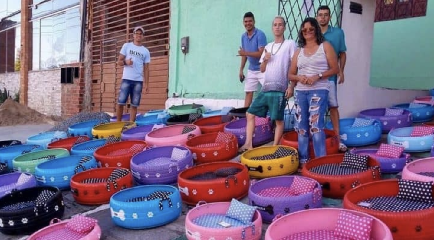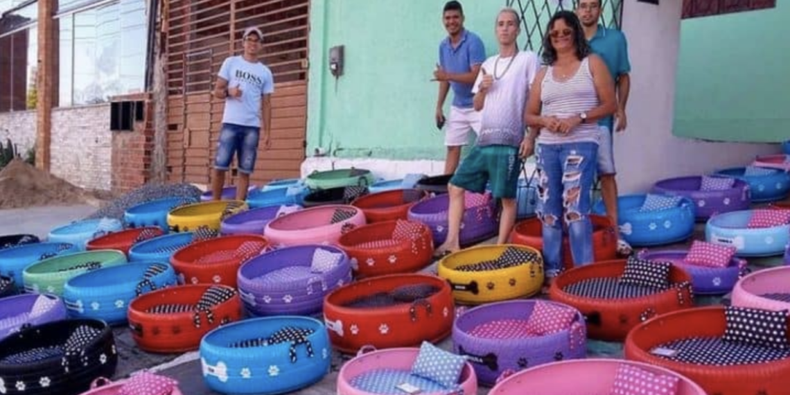 Amarildo Silva, a young artist working in Brazil, has found an inventive new way to upcycle trash in his city – by turning abandoned tires into comfy beds for stray animals.